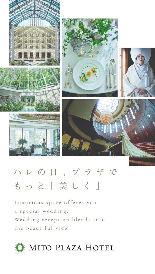 茨城県水戸市にあるホテルのSNS用広告クリエイティブ制作事例です。ウエディング広告撮影で制作したスチール写真をもとにSNSでの広告展開用に、多様なウエディングニーズに向けて訴求要素を7タイプに分けた広告を展開しました。コンセプト、滞在、挙式、オリジナリティ、祝宴、和婚、料理、それぞれ格式高いホテルの強みとなるキーワードを検討し且つカスタマーが分かりやすく手どまり感のあるコピーも制作。動画と連動した優位性の高い価値の訴求を行い、認知・集客を図っています。