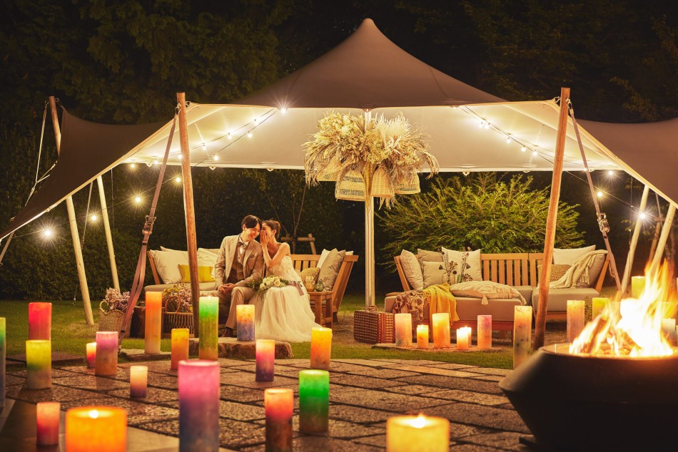 静岡県浜松市にあるゲストハウスの広告撮影事例です。豊かな自然に包まれた非日常を感じるリゾート邸宅で、上質な寛ぎをコンセプトに世界観を演出しました。ふたりのリラックスした表情やしぐさが魅力的な等身大の描写や、ゆっくりとした時間が流れているようなキラービジュアル。空間を彩る装飾や施設内のポテンシャルを最大限に活かすアングルも織り交ぜながら、モダンリゾートウエディングの広告を創り上げました。