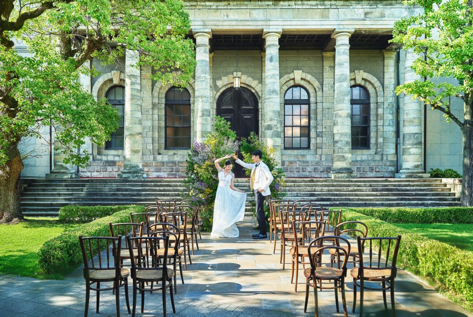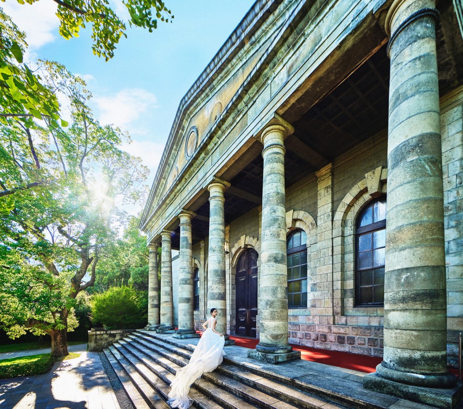 大阪府大阪市にあるゲストハウスの広告撮影事例です。上質をコンセプトに、150年以上の歴史がある重要文化財を再生させた同施設の独自性(=強み)をブラッシュアップしました。エリア内において、優位性の高い重厚な外観建築を背景にしたキラーカットの数々は、構図と演出に拘り、新たな魅力を発掘しています。自然光を拡散するガラスチャペルやモダンなパーティ会場では、上品且つエモーショナルで、センスや質感を感じられる印象的なビジュアルを意識しました。圧倒的な本物感や歴史的価値における格式の高さは残しつつも、ライトな表現を加えることで、今の花嫁に響くクラシックモダンウエディングの広告ビジュアルに仕上げています。