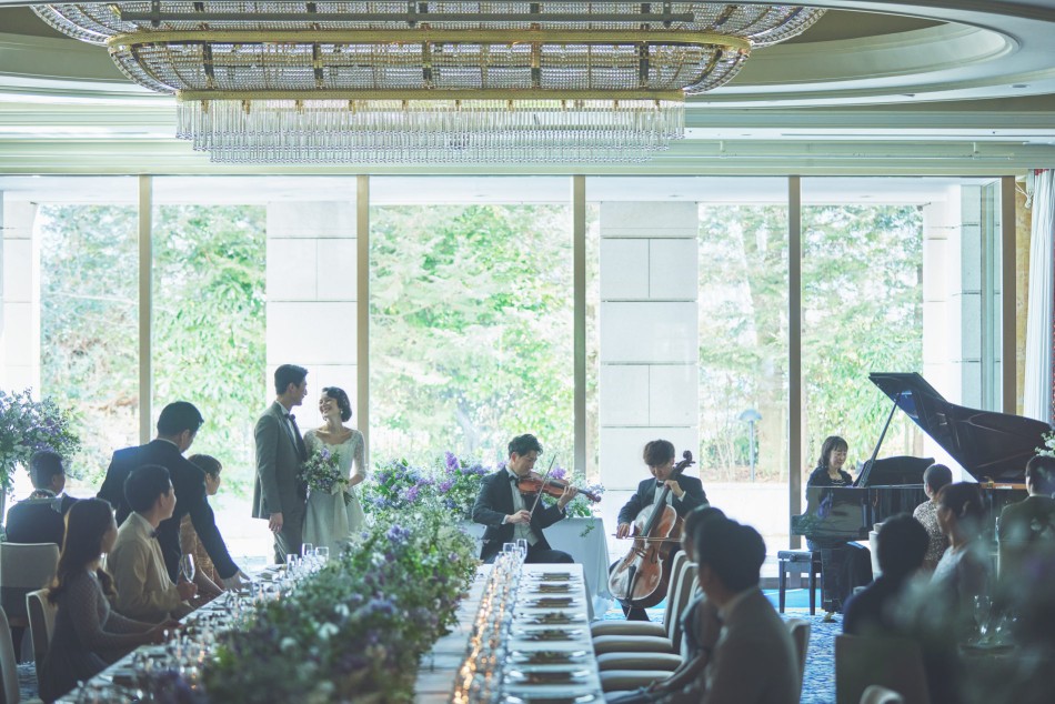 茨城県水戸市にあるホテルの広告撮影事例です。パーティ会場のリニューアルに伴う撮影を行ないました。ハードが強みのゲストハウスが揃うマーケットにおいて滞在型ウエディングの良さをビジュアルへ投影することに注力いたしました。まずリニューアルしたパーティ会場では“優雅な祝宴”をコンセプトに、逆光のライティングを活かした、ナチュラルで奥行を感じられる空間を表現。ロビーの螺旋階段のシーンは、高さのある天窓から入る光がおふたりを照らし、円を描く階段が柔らかで品のある印象を与え、本会場のキラーともいえるカットに仕上がりました。またホテルの魅力として、結婚式の前後に家族と過ごすカットも取り入れることによって、ホテルウエディング=遠方の方が宿泊ができる、だけではない、そこで一緒に過ごす人たちとの時間に付加価値を感じて頂けるビジュアルを創造いたしました。