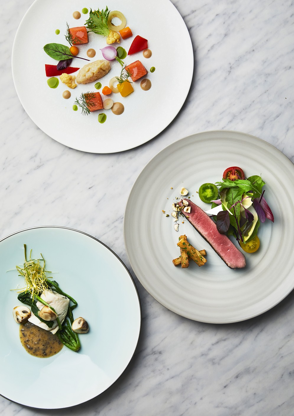 調理風景やシェフのポートレートは、リアリティが伝わるように大胆な色彩加工を施し、厨房内の臨場感を演出しました。