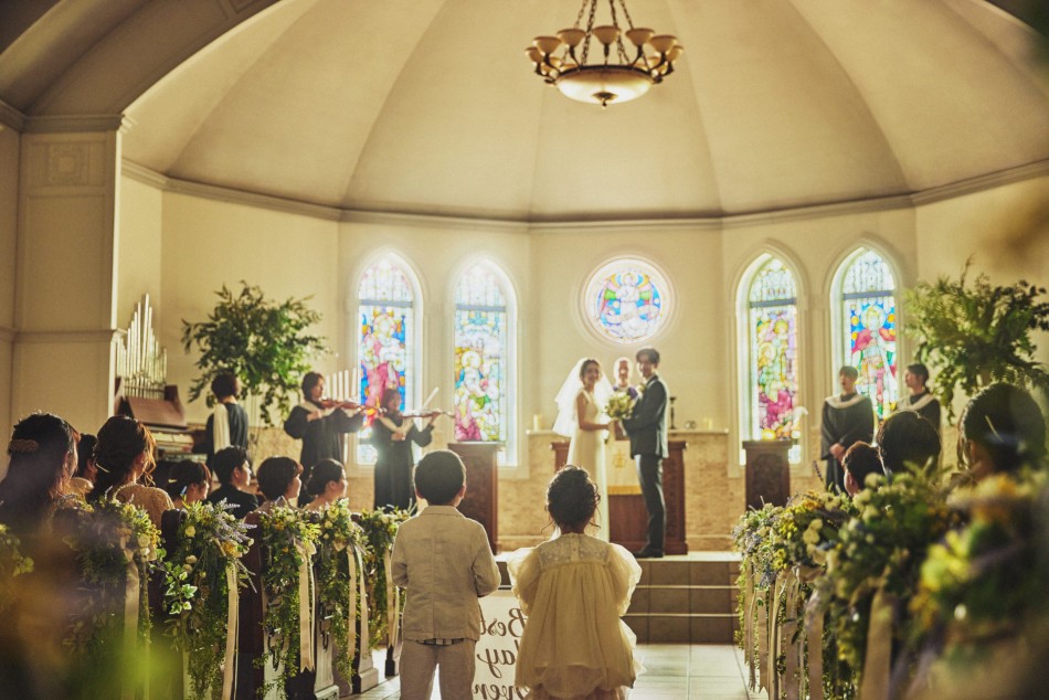 福島県福島市にあるゲストハウスの広告撮影事例です。南仏プロヴァンスの世界で統一された敷地に、独立型チャペルやガーデン付きパーティ会場など、贅沢な施設があります。広告撮影においては、ビジュアル戦略の提案から行い、現状の顧客層とあわせて、花嫁への憧れやゲスト満足への訴求を目的にカット割りを構築。ゲストエキストラを入れたチャペル撮影では、カメラアングルやライティングにこだわり、アンバーの色味やステンドグラスから滲む光を丁寧に表現しハードの魅力を描写。あたたかみのある空間でゲストに囲まれた幸福感や祝福を表現しました。バンケット撮影では旬の装飾を設え、会場が持つ高い空間ポテンシャルを最大限に引き出し、競合他社と差別化しました。マーケットにおいて優位性の高いビジュアルに仕上げています。