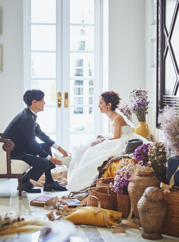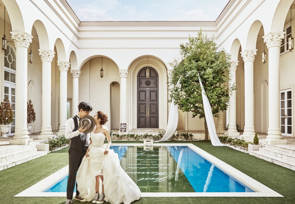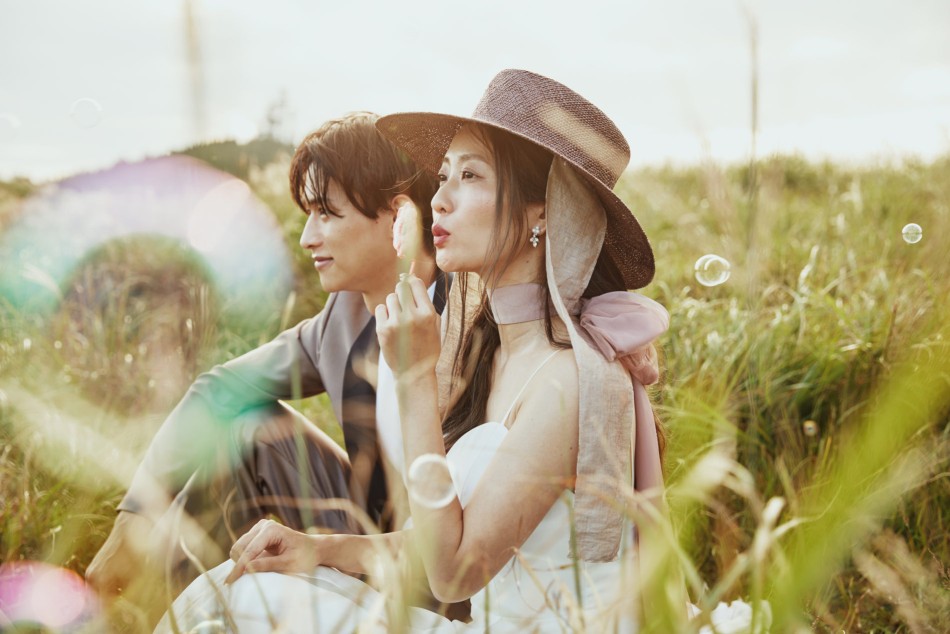 大阪のフォトウエディングスタジオのロケーション撮影を行いました。壮大なロケーションを活かすスケール感のあるアングルに、モデルのスタイリングではフォトウエディングだからこその型にとらわれない、自由で新しいスタイルを作りました。フィルターを絶妙に調整し、独特の彩度と光を演出することで、SNS世代の花嫁の目を引くシネマティックな世界観に仕上げ、競合他社との差別化を図りました。